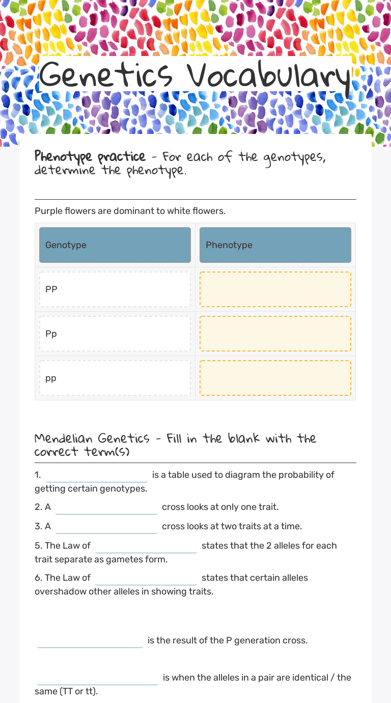 The study of how traits are passed from one generation to the next. Genetics vocabulary worksheet chapter 5. Print answer key pdf take now . Building vocabulary from tall parent. The other genetic factor for each trait comes from a.